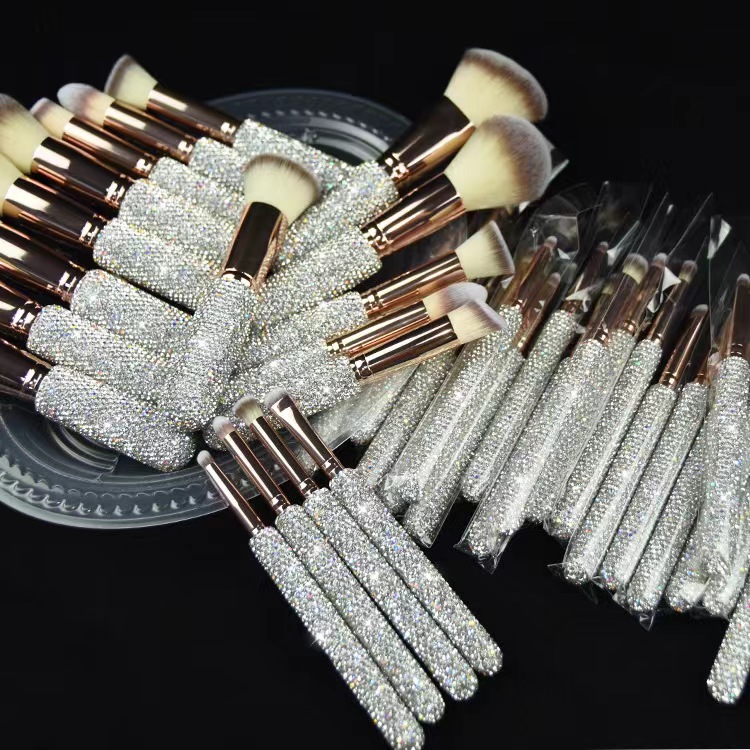 Custom Glitter Handle 21pcs crystal diamond foundation brush set makeup brushes