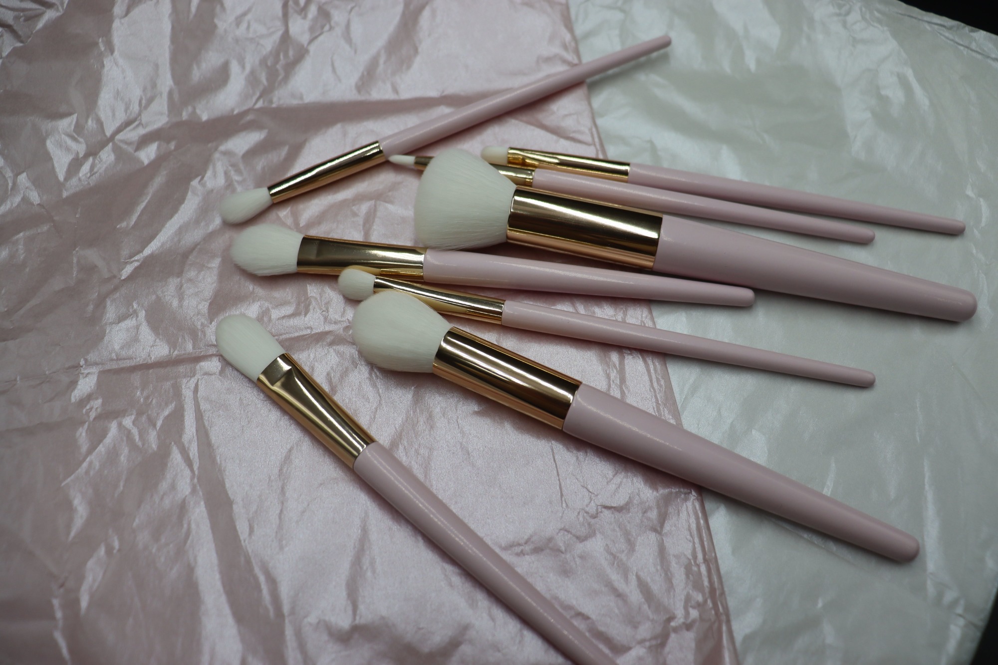 2023 Hot selling high quality low price wholesale 10pcs pink handle gold aluminum tube white synthetic hair makeup brush